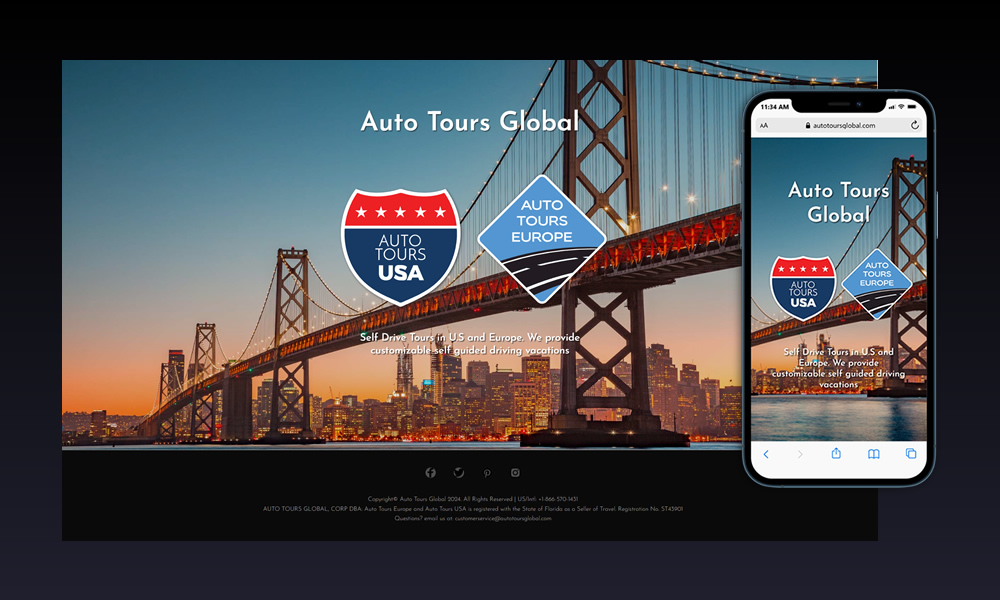 Auto Tours Global is a travel company specializing in personalized self-drive tours, combining custom itineraries, hotel accommodations, and car rentals. As the parent brand, Auto Tours Global supports two regional platforms: Auto Tours Europe and Auto Tours USA, each tailored to its destination while operating under a shared design system.
