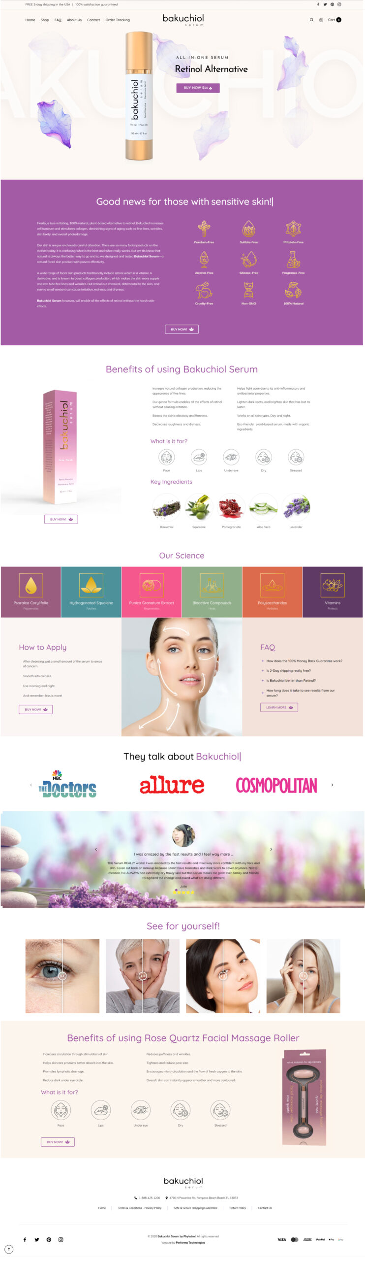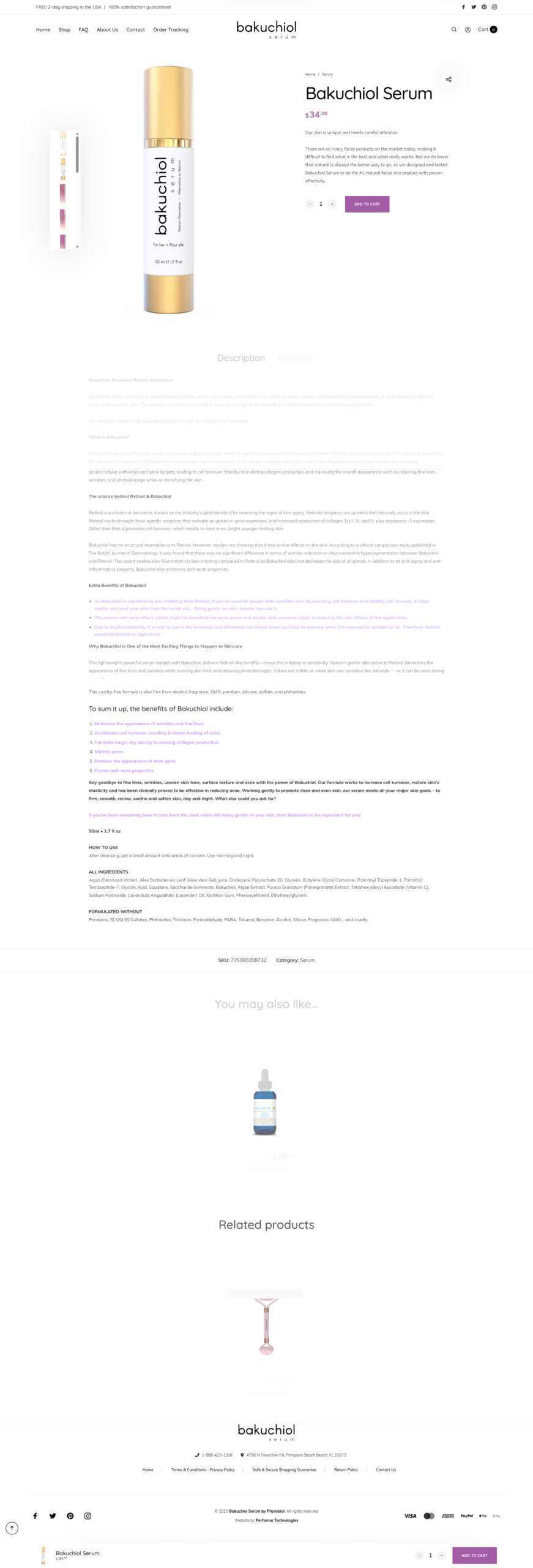 - Sections explaining the benefits of Bakuchiol and how it compares to retinol