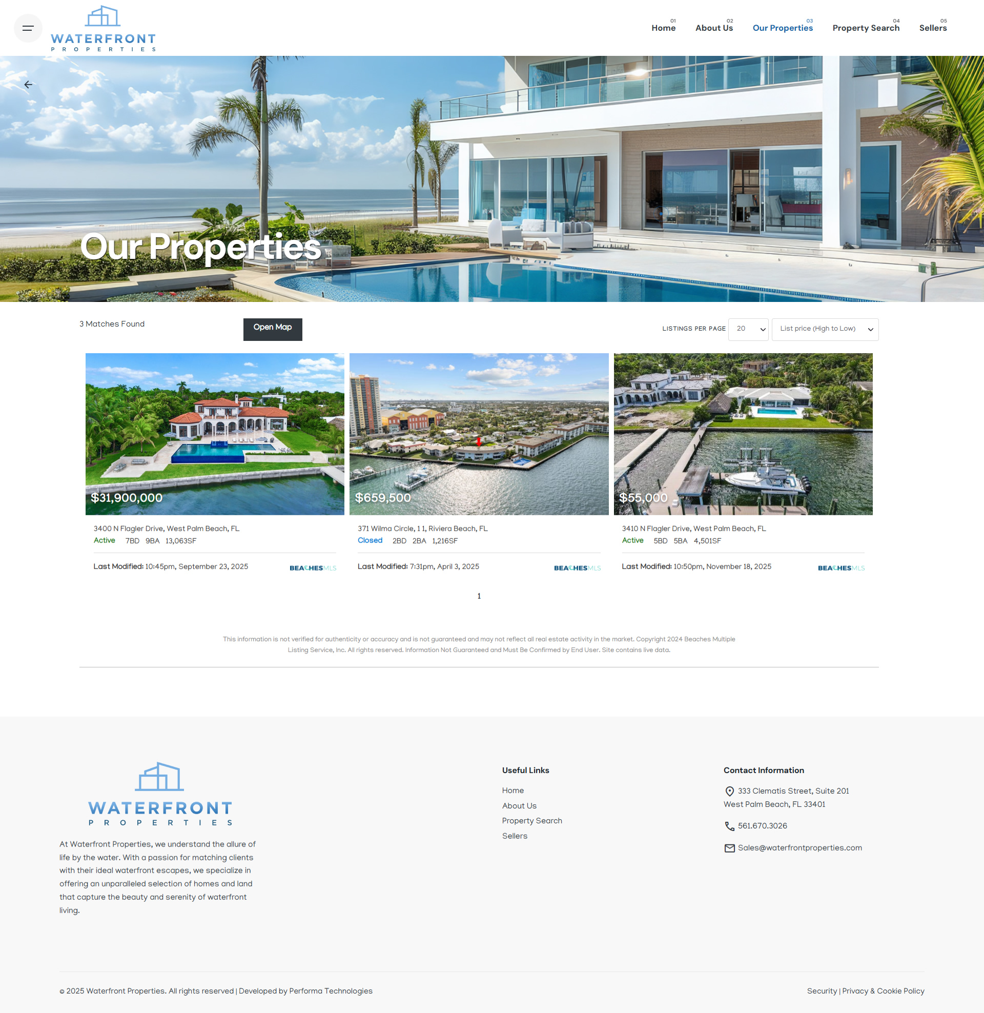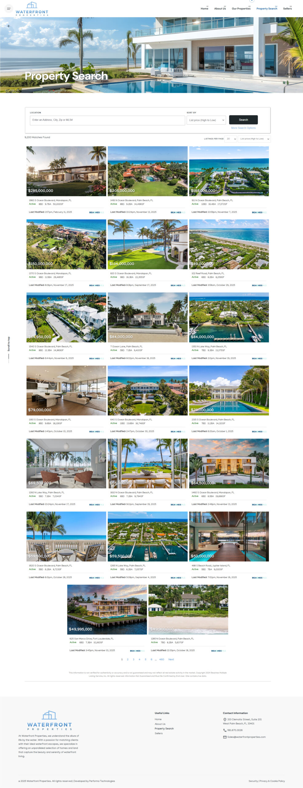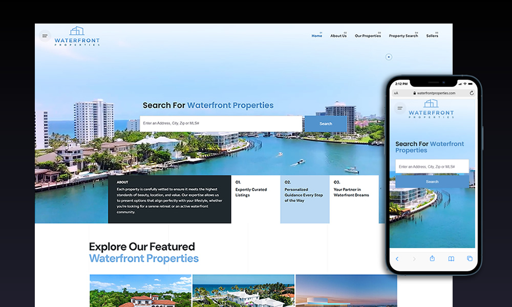 Waterfront Properties is a premier real estate agency specializing in luxury homes across South Florida’s coastal communities. Their website plays a central role in showcasing exclusive listings and attracting high-value buyers, but the digital experience needed a fresh, modern approach to match the sophistication of their brand.